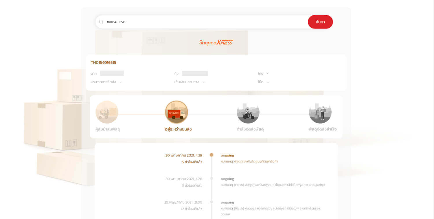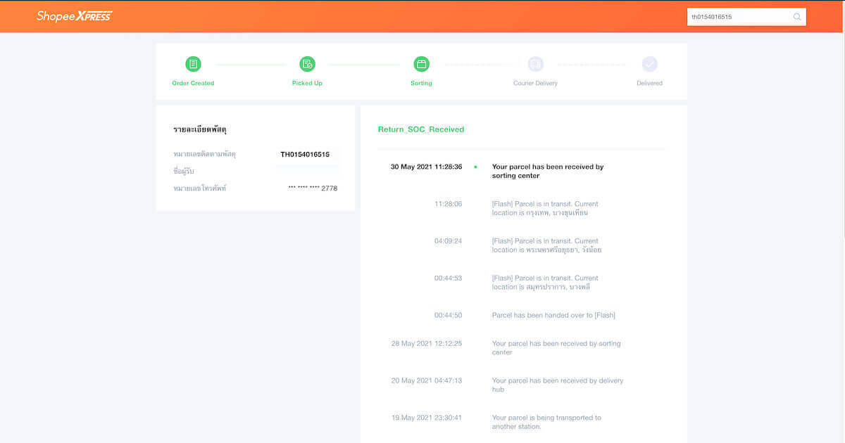 ขั้นตอนที่ 3. ในกรณีที่เราอยากดูรายละเอียดเพิ่มเติม ให้เข้าไปที่เว็บไซต์ https://spx.co.th/#/detail/th015401651 แล้วพิมพ์หมายเลขพัสดุที่เราต้องการ เช็คพัสดุ ต่อท้าย URL ดังตัวอย่างลิ้งค์ จะได้ผลลัพธ์ดังรูป