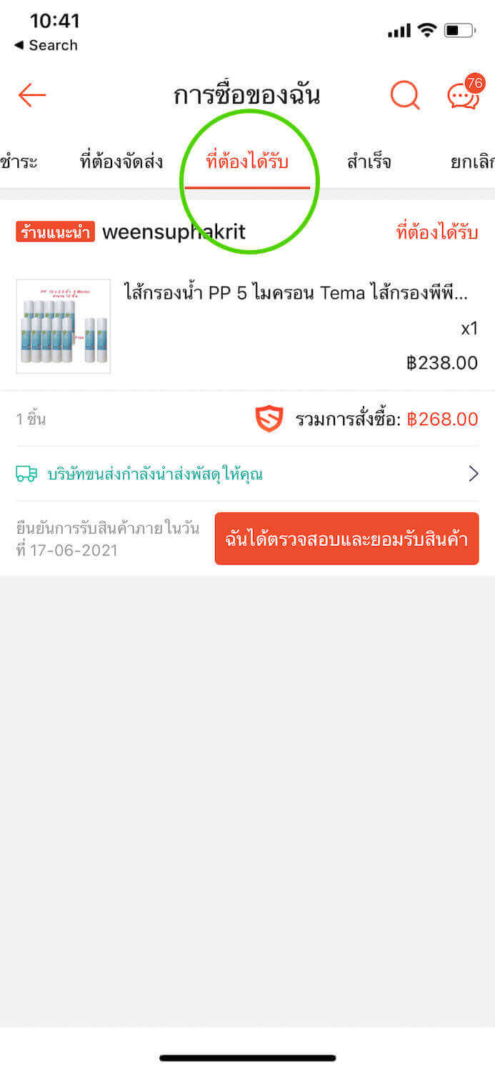 ขั้นตอนที่ 4. เมื่อเข้ามาแล้วให้กดไปที่แถบเมนู “ที่ต้องได้รับ” เราจะเจอรายการสินค้าที่เราได้สั่งซื้อไว้