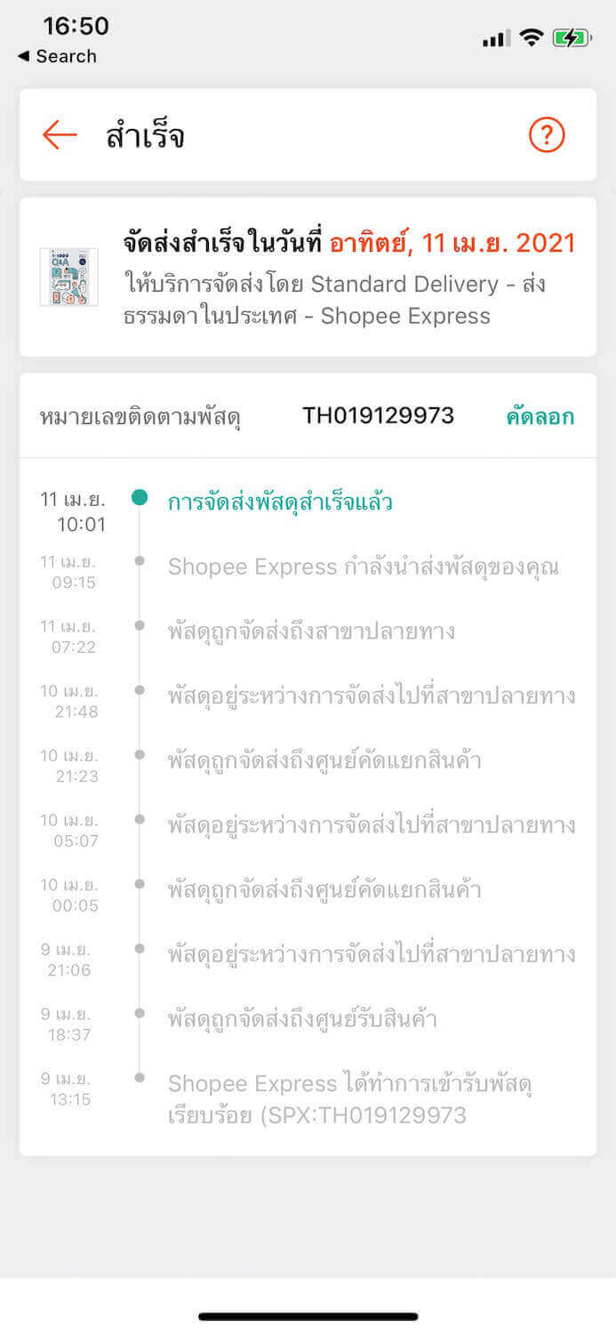 ขั้นตอนที่ 6. จะได้ผลลัพธ์สถานะ standard delivery เช็คพัสดุ ตามที่ต้องการ